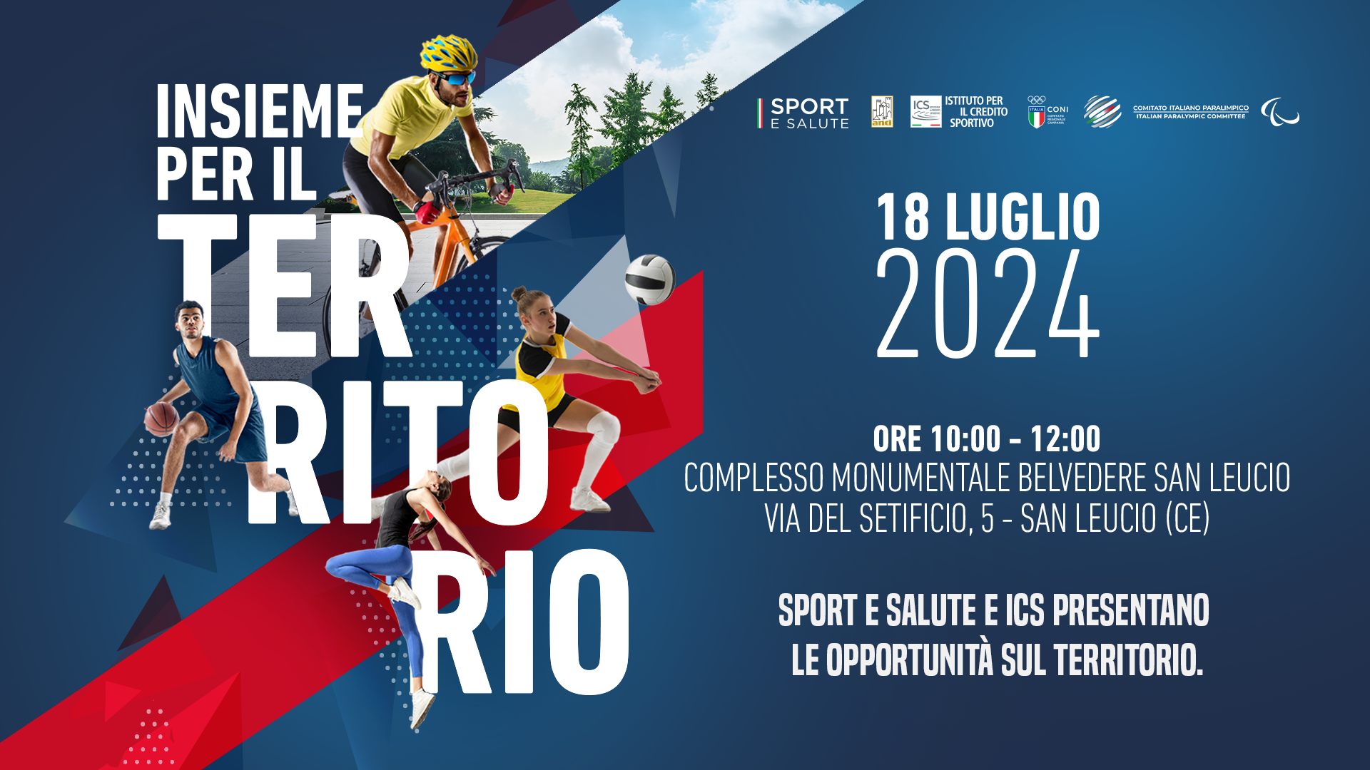 L'appuntamento è per le 10.00 al Complesso monumentale "Belvedere" di San Leucio, nel casertano, quando a rivolgere i saluti istituzionali saranno il segretario ANCI Campania, Carlo Marino, il Delegato CONI di Caserta, Michele De Simone, il Presidente CIP Campania Carmine Mellon ed il Coordinatore Sport e Salute Campania Francesca Merenda.
