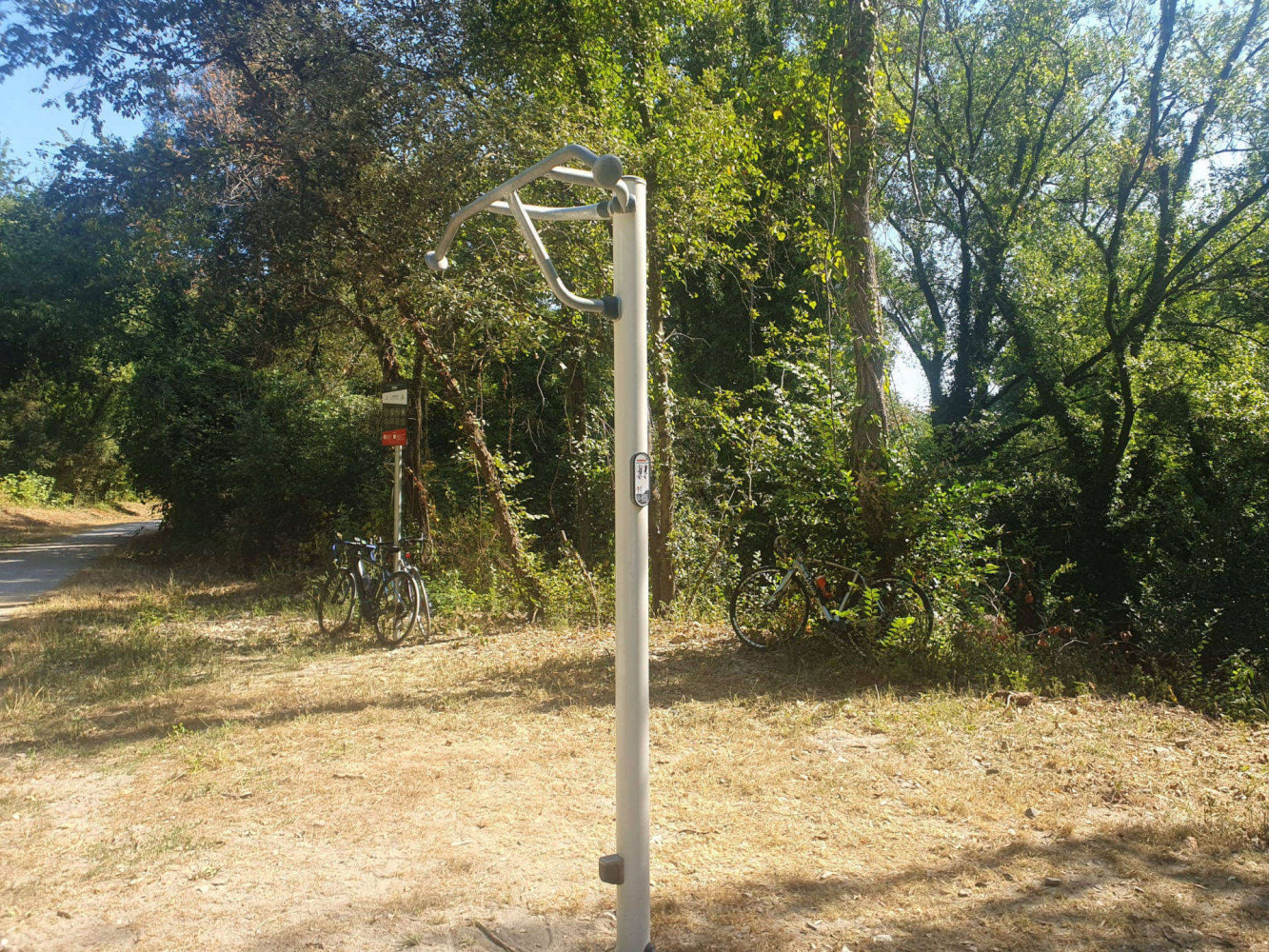 Per il Parco è stato scelto il modello progettuale “Large” composto da: step (40 cm), step (60 cm), bici per braccia (handbike), city bike, pressa gambe e pull up, spalliera, panca per tricipidi, barre push up, combi 4 e custom.