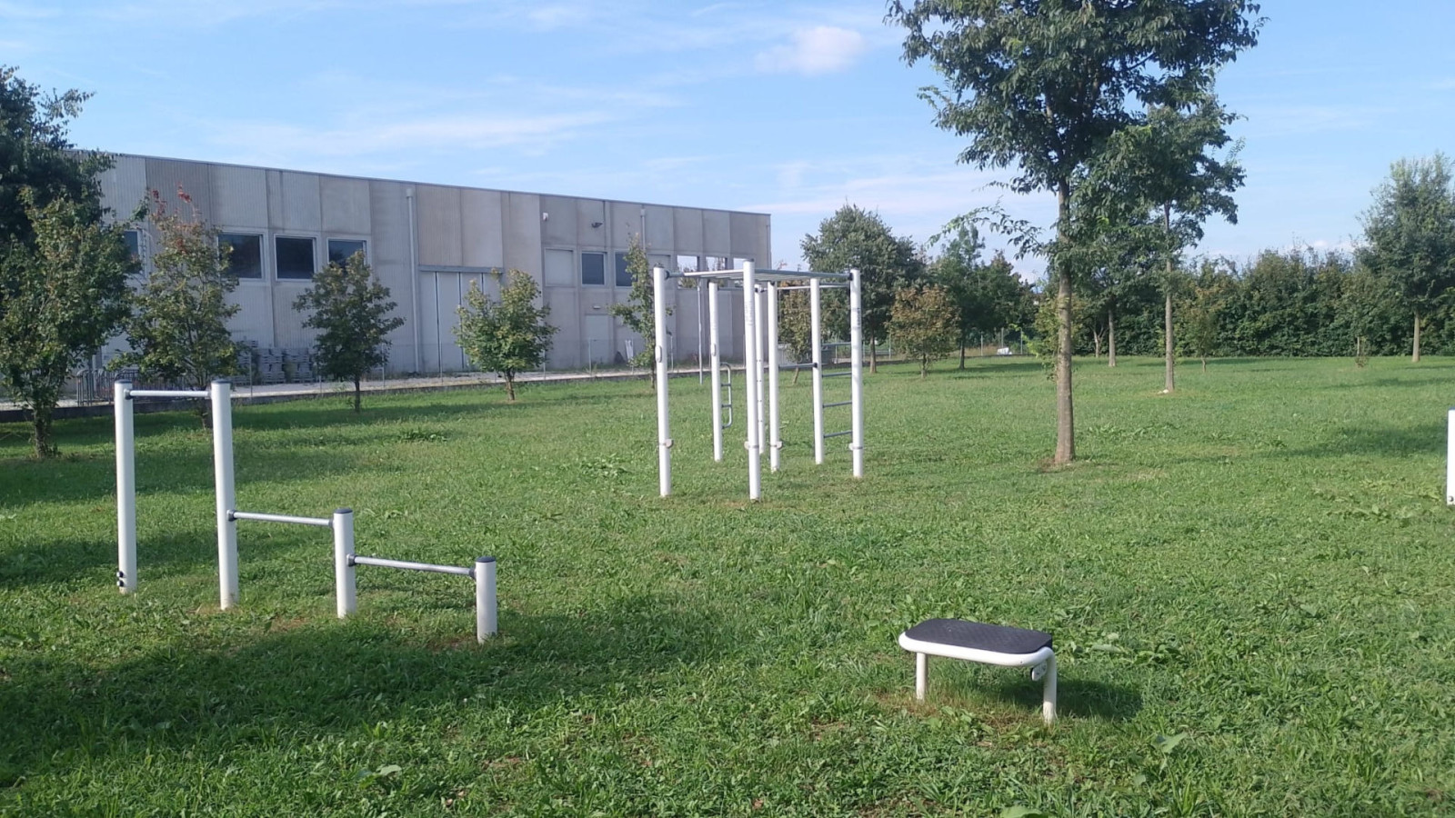 Per il Parco è stato scelto il modello progettuale “Medium” composto da: step (40 cm), step (60 cm), bici per braccia (handbike), pressa gambe e pull up, panca sit up, barre parallele, combi 3.