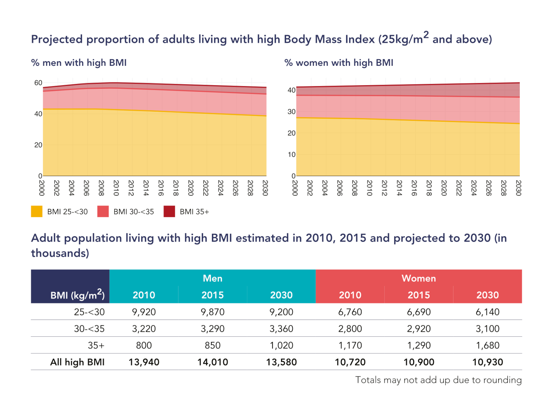 - Europa: 65% uomini e 52% donne con BMI alto entro il 2030